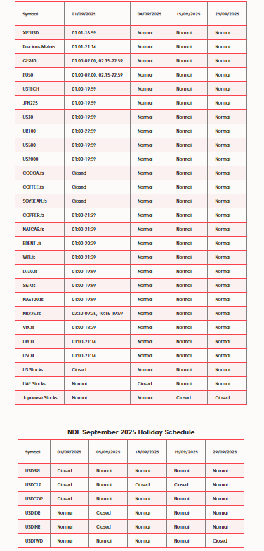 Important: Unexpected market closures and changes to normal trading hours can affect open positions, so please ensure you check the calendar regularly and plan your trades accordingly. If you have any questions, feel free to contact our Client Services team.